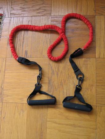 .. FLEX BAND with handles. Soft red fabric covers strong interior tube. $5
