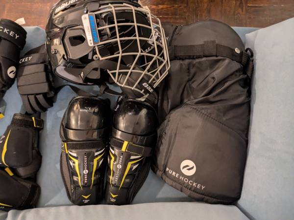 Cash only Skates size Y 12 L Helmet size S Pant YT-M Shoulder pad YT-M Shin guard 9' Elbow pad YT-S GLoves 9' Girl groin protection S