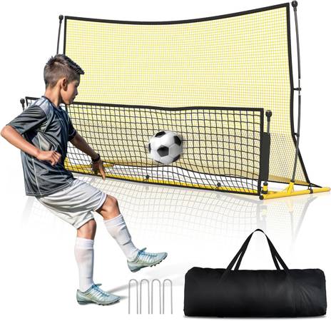 Game-changing Soccer Trainer: Discover our upgraded soccer rebounder net, ideal for practicing ground passes, aerial passes, shooting, ball control, and heading. The 7'x4' large net can be used for practicing volley and loop pass, while the 7'x20" small net specializes in ground pass precision. With our rebound soccer net, you can focus on improving your skills!