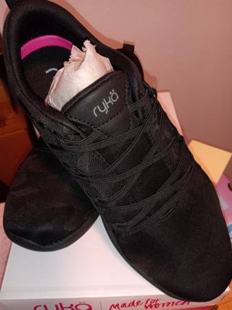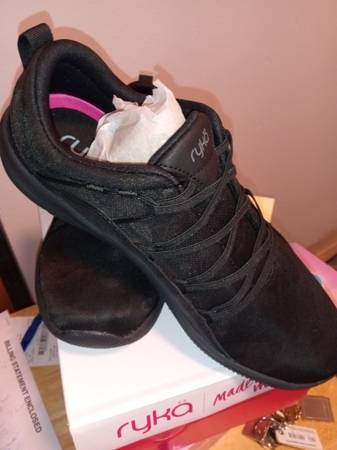 New. Never used. Ryka- made for women. Black, size 8 Wide. Narrow heel. Roomier Forefoot. Increased instep volume. More secure footbed. Cash and pick up only. No exchanges or returns.
