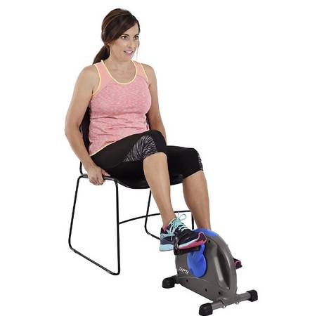 Tone your upper- and lower-body muscles almost anywhere with this Stamina Mini Exercise Bike. The compact bike can be placed under your desk at work or on a table at home, so you can fit in a workout to burn calories, tone muscles and more. The textured pedals and straps provide safe, smooth pedaling with your feet or hands, while the easy-to-reach dial offers smooth resistance changes to suit your desired level of intensity.