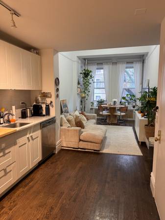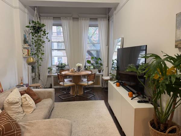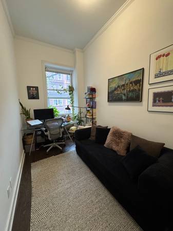 Our massive, 900 square foot apartment takes up the entire second floor of the building, with the sun-drenched living room/2nd bedroom overlooking the idyllic UWS street, while the main bedroom in the back is even quieter, facing the back patio. Super high cielings and classic old school NYC trim and detailing makes this a great place for a couple-week visit to the city. Our bed is a Stearns & Foster King and the second bedroom has a convertible couch-to-futon. We also have a blowup queen-size mattress if necessary.