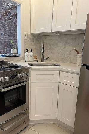Bright, south facing Co-op Apartment features charming exposed brick, a decorative fireplace, high ceiling, and a through wall air conditioning. Newly renovated kitchen features stainless steel appliances and an updated bathroom.