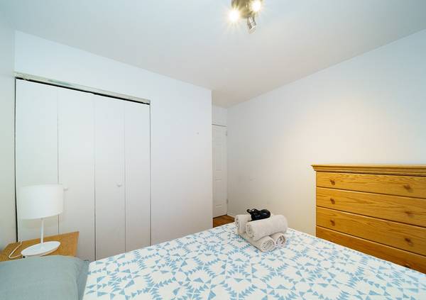 These 2 bedrooms are furnished. Each bedroom has a Queen-size bed with a closet. The kitchen is fully equipped.