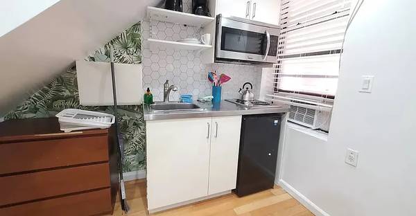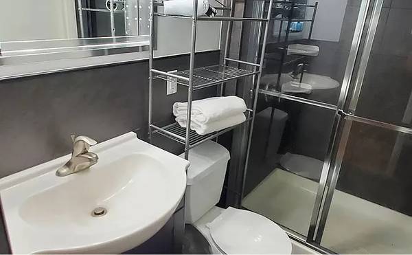 - Stainless Steel Appliances (Half Fridge, Electric burners, Microwave)
