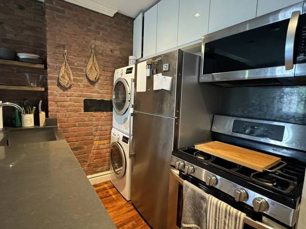 - Renovated kitchen with stainless steel appliances, including a dishwasher.