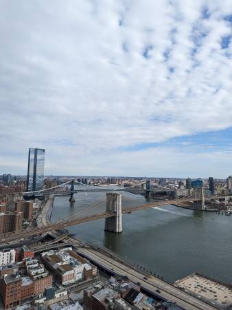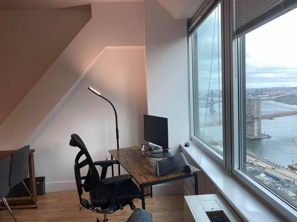 The building has a gym (included in the price), vallet, dry cleaning, a rooftop and the apartment has a bit of a view on the Brooklyn and Manhattan bridges.