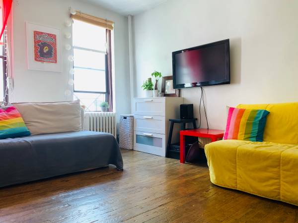 My husband and I are subletting our lovely, bright, clean, furnished studio located in East Village, close to Tompkins Sq Park.