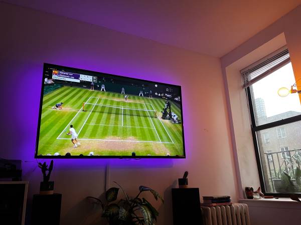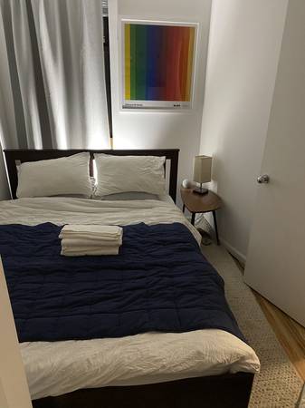 Fully furnished with brand new queen sized bed, 65 inch tv, dishwasher, 4 person sectional sofa, kitchen table, desk space with 2 monitors, electric piano, bar, full kitchen including convection oven and air frier, lobby area, music systems.