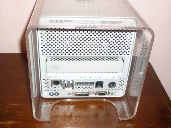 Rare Power Mac G4 in its clear cube in good working condition. Cannot be significantly upgraded because of the original space and design limitations, but a true design icon for Apple collectors. Includes power adapter, matching clear keyboard and mouse, and a period monitor - $400 for the set. Cash only.