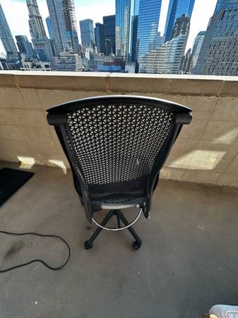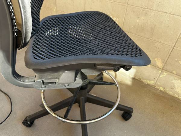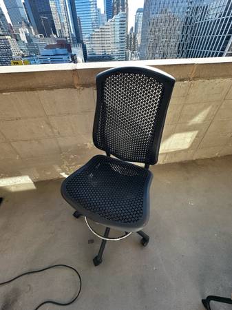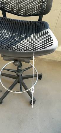 black chair works well. the seat height is really high so you need to have a standing desk. or an easel.