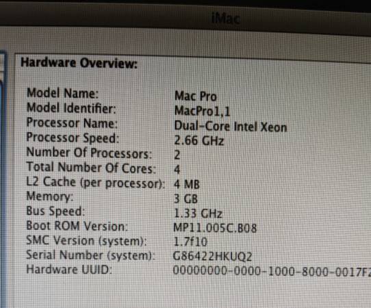Processor 2 x 2.66GHz Dual-Core Intel Xeon