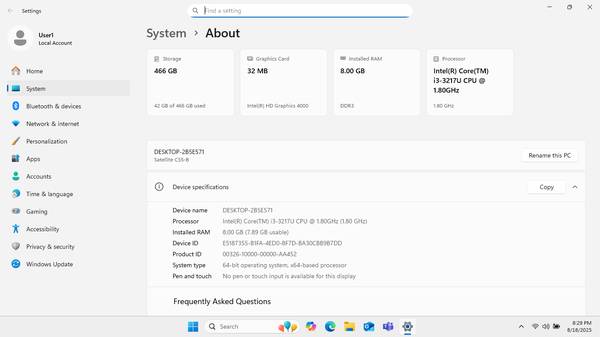 Intel HD Graphics 4000 32MB, 15.6" Windows 11 Home