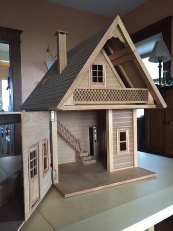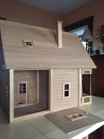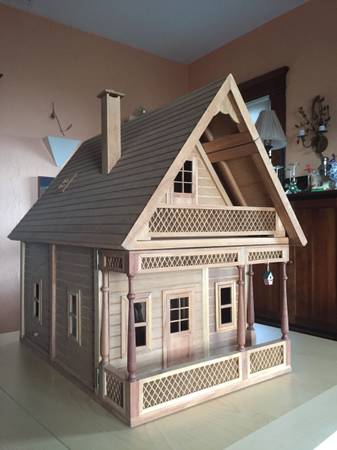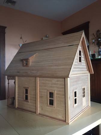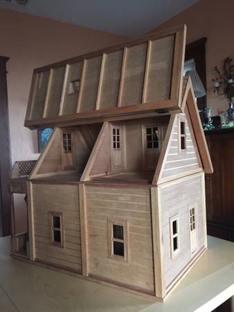 Beautiful, one of a kind hardwood doll house. Made in Sri Lanka. Size: base 17 x 26 inches, hight 25 inches. Comes with some furniture. Was never played with, truly like new.