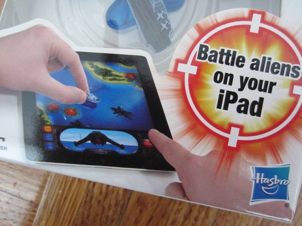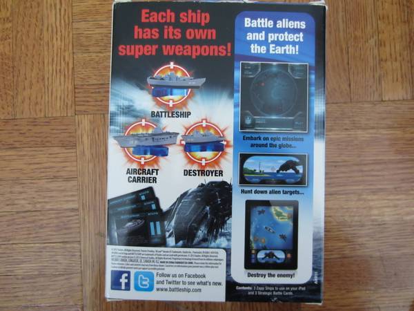 Battleship: Battle aliens and protect the Earth! Comes with 3 ships (Battleship, Aircraft Carrier and Destroyer) to use on your Ipad Screen and 3 battle cards in original box.