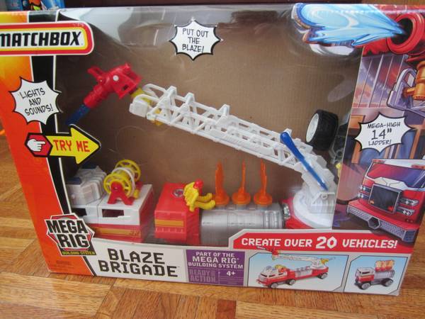 Lets you fight fires with a super equipped fire truck and break it down into 20 separate vehicles. Complete with sirens, water cannons, a hose and an extendable ladder, the Mega Rig Blaze Brigade is what you need to fight a mega fire.
