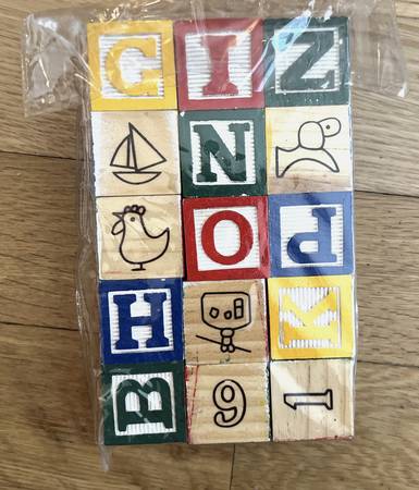 Classic Blocks with letters, numbers, and pictures 15 pieces Package opened but blocks never used (bought this to use for a photo shoot and didn't)