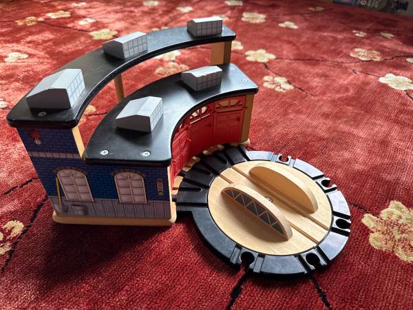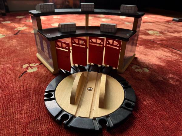 Four Door Roundhouse Shed & Turntable for Thomas & Friends Wooden Railway Compatible with Thomas and Brio sets.