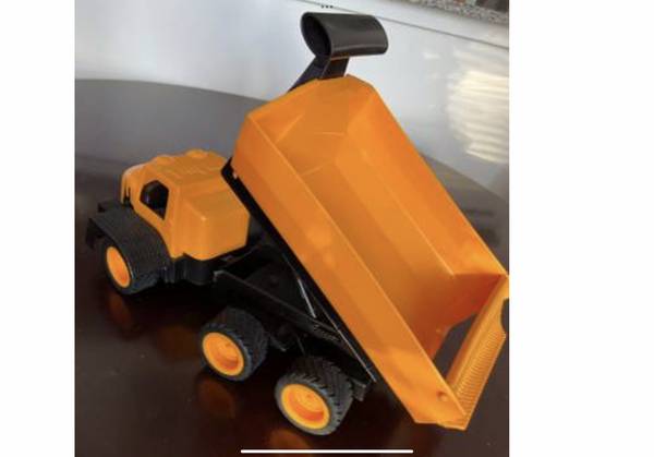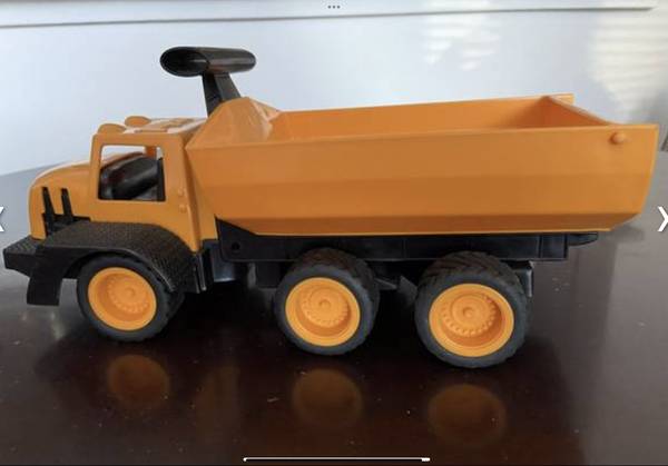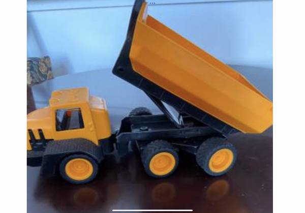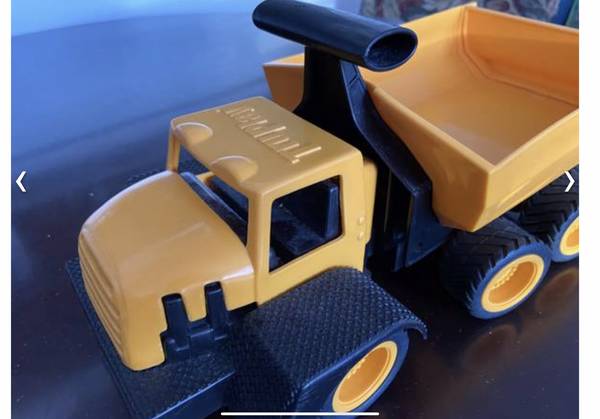 Load the dump bed and dump your payload like the real trucks. Sturdy high quality plastic with real rubber wheels. Approximately 13 inches long and 5 1/4 inches wide. See pictures