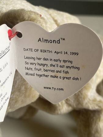 Ty Beanie Baby - from1999 Almond and Pecan Bear stuffed animal toys, new with tags new. both for 15.00. Cash and pick up only.