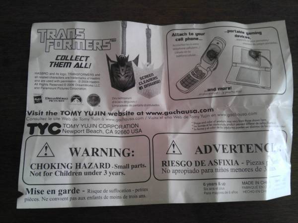 FREE brand new, mint condition Blackout Decepticon Transformers Movie screen cleaner charm