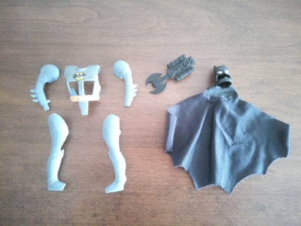 - Bruce Wayne sees the Bat-Signal in the sky . . . Batman emerges quickly with snap-on armor, powerful hand weapon, mask and cape!