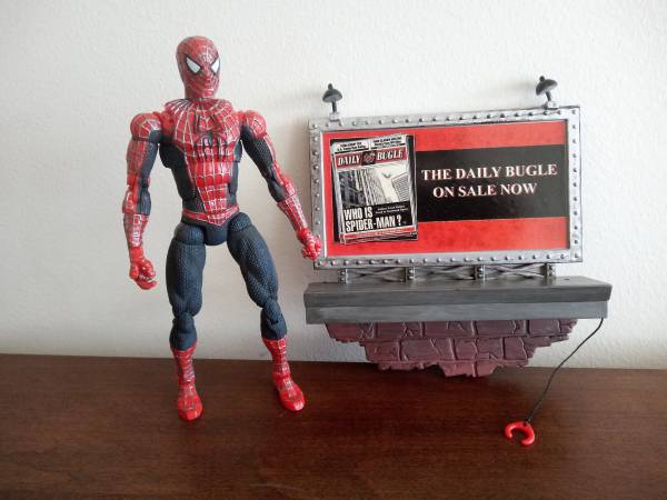 - Spider-Man can stand on ledge or swing from Daily Bugle sign/wall (clip wrist into clamp).