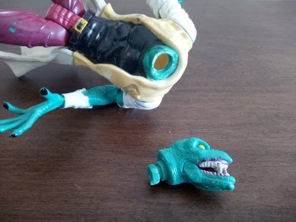 - Left arm comes off because the elbow-joint screw is missing one side.