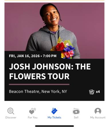 4 Josh Johnson Beacon Tix for Friday, 1/16/26 - $360 (New York)