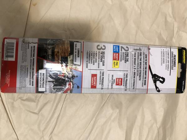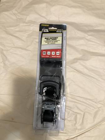 Progrip Bar Ratchet With J Hooks. SKU: 318600 16 ft. x 1 in. Coated Double-J Hooks Black Polyester Webbing Break Strength: 1,800 lbs Working Load Limit: 600 lbs Used only once.