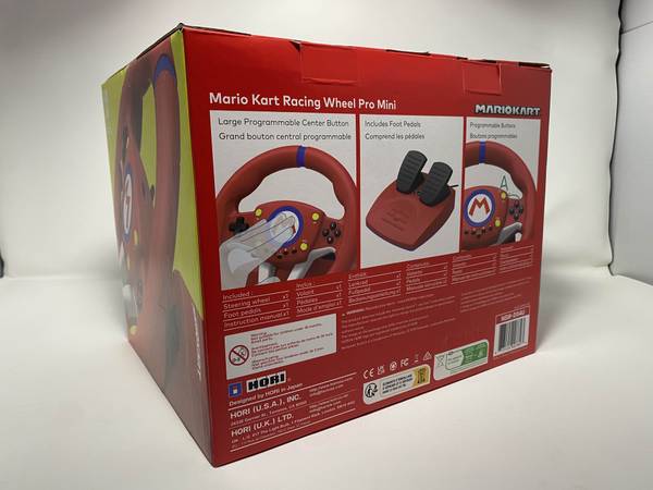 Hori is pleased to present the Nintendo Switch Mario Kart Racing Wheel Pro Mini! This racing wheel is ideal for any Mario Kart or racing gamer that likes to get right in the action! The ergonomic wheel design, pedals, and convenient onboard controls were built to create an authentic racing simulation. Officially Licensed by Nintendo.