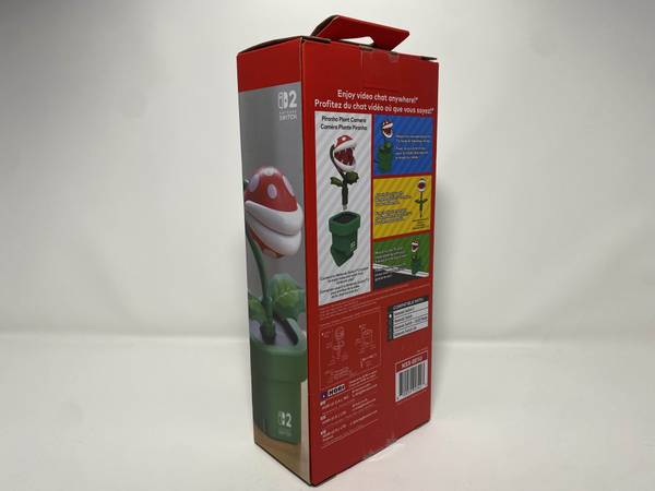 Enjoy video chat anywhere with the HORI Piranha Plant Camera for Nintendo Switch 2! The adorably ferocious Piranha Plant Camera captures all your favorite gaming moments with family and friends wherever you play. It is easy to enjoy live video chat and other exciting in-game features with its versatility. The detachable camera unit has a flexible neck to capture the perfect angle, and the mouth can be opened or closed to cover the camera lens for privacy. Piranha Plant Camera can be used in three different ways: stand alone, mounted, or directly attached.