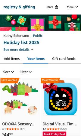 Our Christmas Wishlist is on Amazon but im not allowed to post the link. I added a pic to look us up.