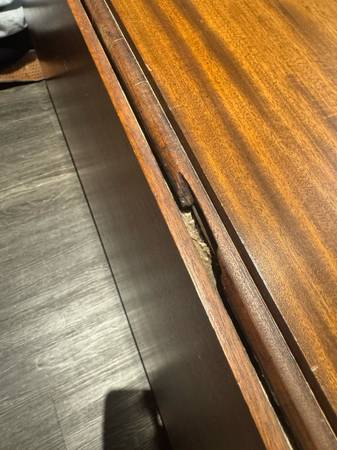 • Small section of wood missing at one leaf joint (cosmetic only, does not affect stability or function)