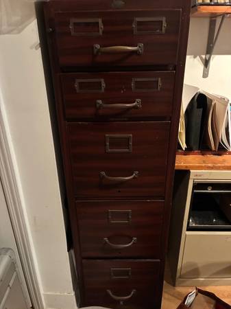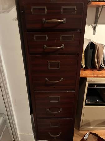 While I’m willing to give all the cabinets(including the Flat File) away for free, many people seem to want the flat files only. Accordingly, if you want only the 4 Flat files, I will accept $250.00 for them. (Because I will have to pay to get rid of the other cabinets).