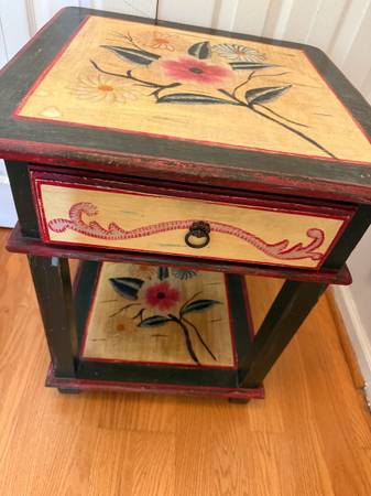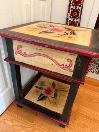 Side table with single drawer. Painted with flowers..