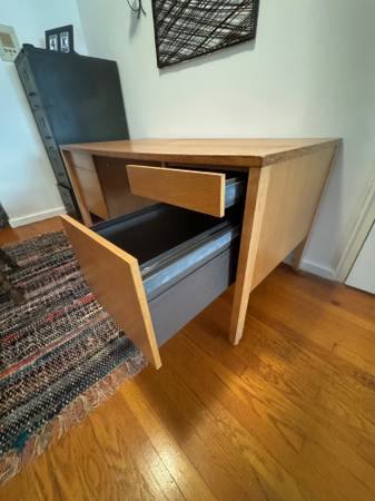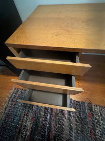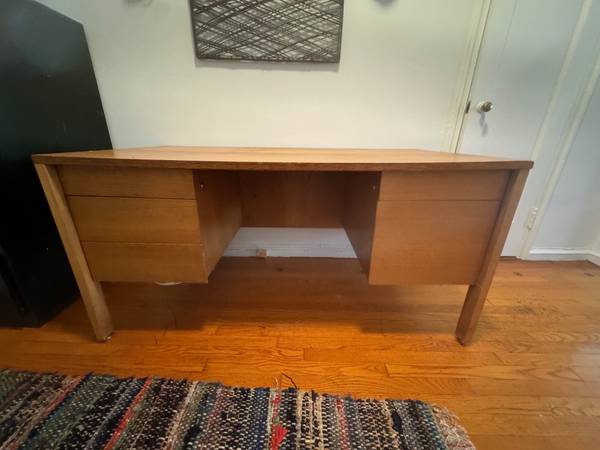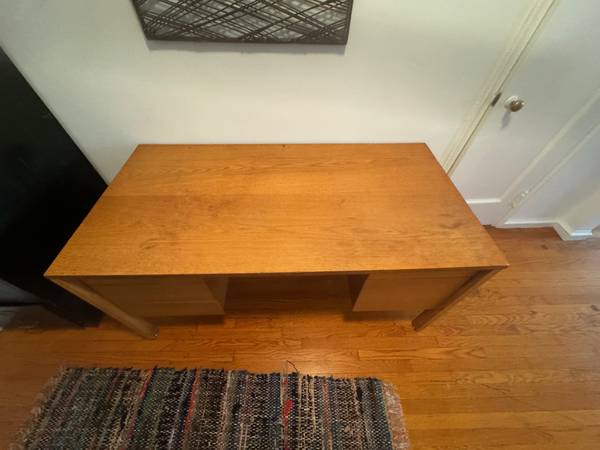 This is a great desk in excellent vintage condition. We are giving it away because it will not fit in the new place. It is XL at 5 ft wide x 30" deep x 29" high. It is solid wood and does not come apart so you will need a large SUV or truck to transport it. Easy pick-up from elevator building on Seaman Avenue at 215th Street. Please include a legit number to coordinate, no number from you no response from us. Thank you.