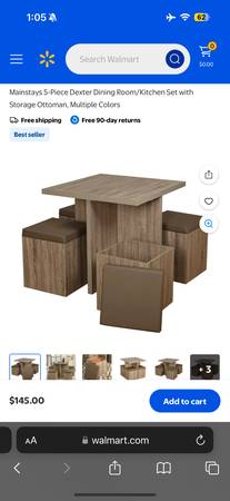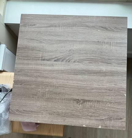 Square table. 31 x 31 inches. 29.5 inches tall. Use to have ottoman seats, however you can easily use 4 chairs too. There is an elevator in the building so it will be easy to move.