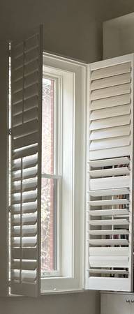 Three sets of large window shutters with louvers. Two sets are regular, one is bifold. Single fold 22.5" w (45" across closed) by 92" h. Bifold 17" w (68" across closed) by 92" h. The shutters are...