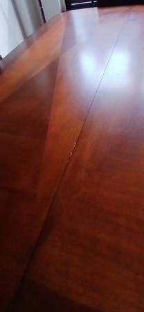 This table is from Raymour and Flannigan. It's in good shape with some minor scratch marks. I have the leaf and hardware that extends it to the full size. It will be disassembled and brought down to street level for easy pickup. You may also take the four chairs (bar height) matching chairs if you wish.