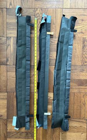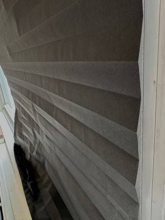 These are accordian blackout shades made from a special heavy duty paper that does not tear easily. They are in fair condition but useable to black out that bright morning sun until you get some permanent shades or blinds. These were "temporary" for a year! LOL