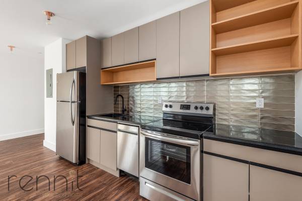 The apartment features a modern kitchen with high-end stainless steel appliances including a dishwasher, large windows letting in abundant natural light, and ample closet space. The bathroom includes a tub and shower, and the unit has central air and heat, as well as a video intercom system. Pets are allowed upon approval, and guarantors are accepted. Showings by appointment only.