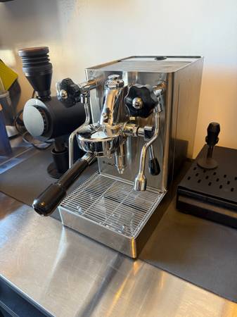 Includes a bottomless portafilter (if you prefer a spouted portafilter I can give you one from my new machine), a single basket, a double basket, backflush basket, a fairly fresh water softener installed (7/70 liters used, they are cleanable but I usually just replace every year), an unused 70l water filter (in packaging). The only thing you need is your own espresso grinder & a tamper.