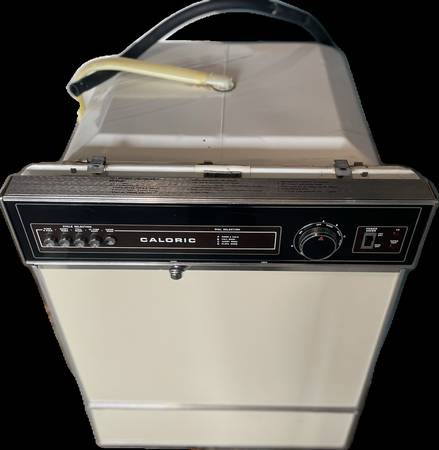 Selling a vintage kitchen set: Magic Chef 61RA-3KW gas range (late 1960s–early 1970s) and Caloric DUR20519OK dishwasher (late 1970s–early 1980s).