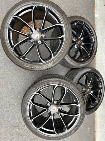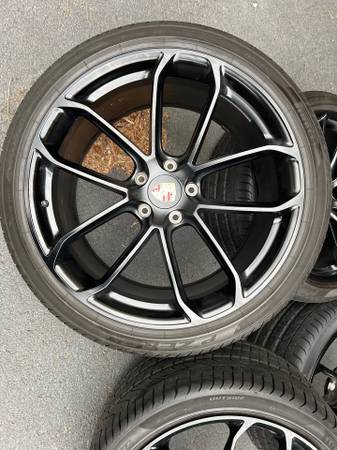 22-nch GT Design Summer wheels rims with Pirelli Pzero factory tires, tpms, matching black porsche center caps.