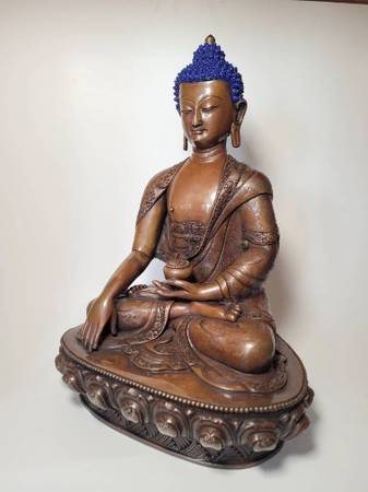Nice quality statue of shakyamuni buddha handmade in nepal from oxidized copper. Nice face with nice hand carving. Size -13 inch tall Weight-3750 grams Also visit us for more at :...