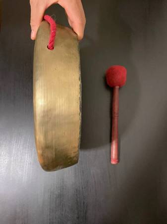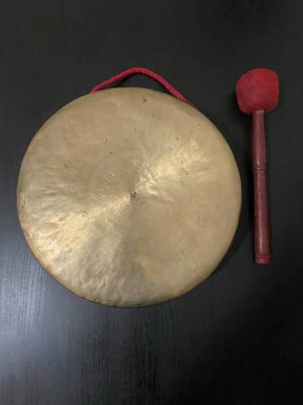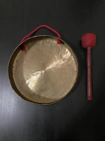 Tibetan gong made from pure bronze. It has nice and loud sound. Used in bhuddhist monastries for ritual practice and meditation. It is exactly 12 inch diameter. Weight is 870 grams. Very thin and light weight. Handmade in Nepal.Contact us for more details.