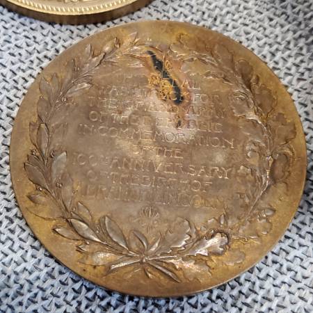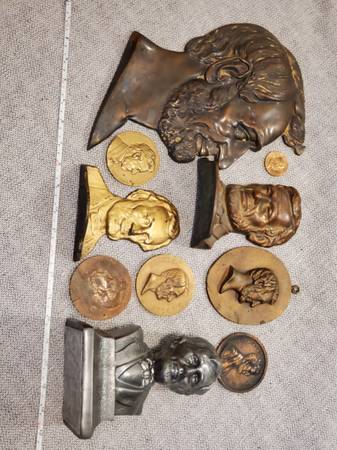 This is an impressive 10-piece collection of Abraham Lincoln commemorative items spanning multiple decades and artistic styles. The lot features a mix of bronze busts, brass medallions, and commemorative coins—perfect for history enthusiasts, collectors, or anyone interested in 19th-century American memorabilia.