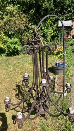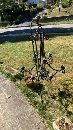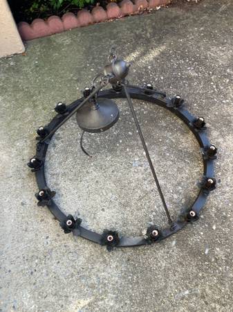 Call out the flying monkey guards! Here’s a massive 2 tier gothic chandelier that could be from the Wizard of Oz. Takes standard bulb base, I’d use a flame style but hang this thing anywhere and you’ll feel like Margaret Hamilton is flying in on her broom. One of a kind. 30”W x 36”H