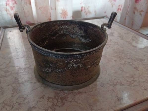This is a very pretty piece with repousse and etching and would make a great planter.